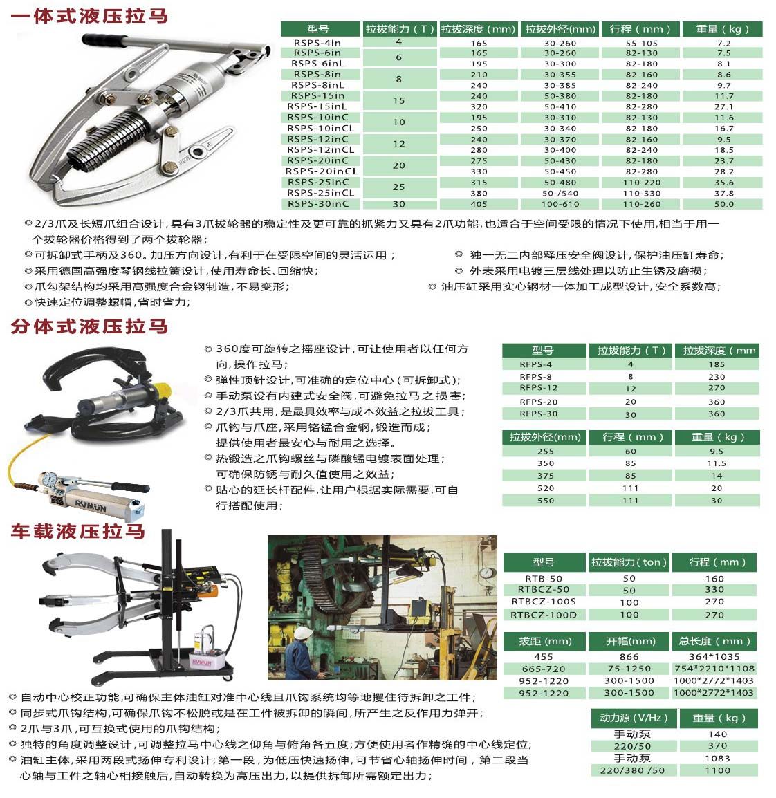 • 进口车载式液压拉马,一体式液压拉拔器,液压拔轮器