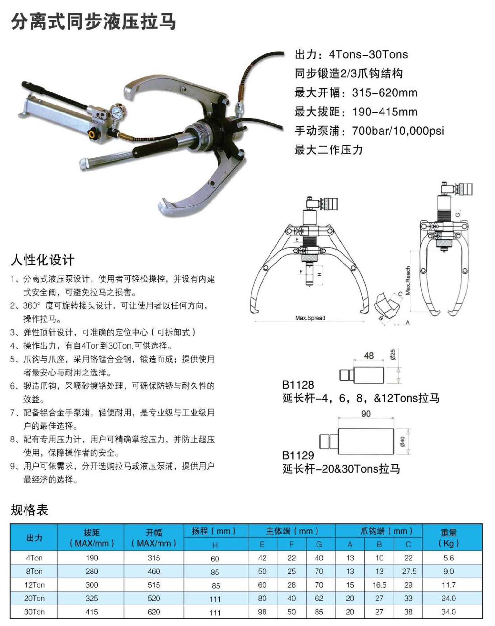 同步式爪勾结构,采用双动一体式液压泵操作,提供安全,准确及稳定的压力及超稳定的夹持力抓住工件。